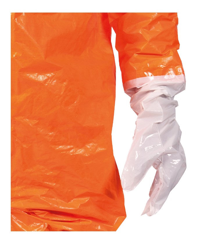 The suit is made from Tychem F, a lightweight, resistant material that provides a high barrier against the permeation of a wide range of chemicals and protects the wearer from numerous organic and highly concentrated inorganic chemicals. It is also antistatic.