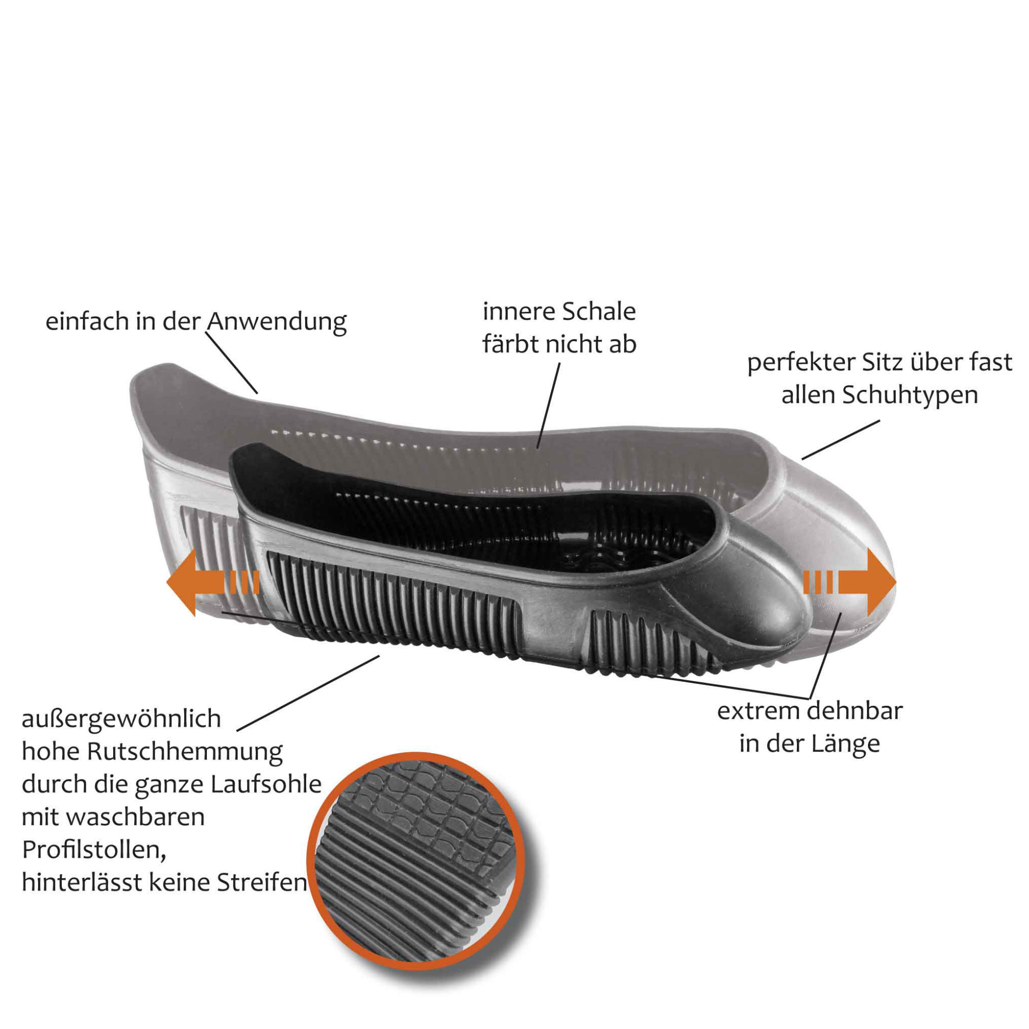 Certified, slip-resistant overshoes - up to 340% above SRC standard, autoclavable anti-slip overshoes made of latex ► Prevention of slipping accidents on wet or slightly oily floors!   Slip resistance on greasy and damp floors, certified according to NF EN ISO 20347 SRC, FO (resistance to hydrocarbons)Ideally suited for the prevention of slip accidents in the food and beverage industry, in restaurants, in industrial cleaning and as dirt protection for craftsmen.- Closed, waterproof shell made of natural latex (hardness: Shore A 50) with exceptional elasticity for a perfect fit over almost any type of shoe - hygienic and comfortable.