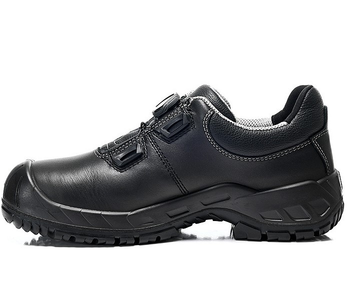 For tough applications on the construction site or in other demanding work areas, the LAURENZO BOA® Low ESD S3 is the safety professional for your feet. Equipped with the innovative BOA® Fit System, poor fit is a thing of the past. The upper material made of cowhide is very robust and water-repellent. The raised PU toe protection is very durable and prevents premature wear. The breathable textile lining ensures a comfortable wearing comfort. Equipped with a steel cap and a metal-free anti-penetration barrier, the LAURENZO is able to withstand the many dangers of tough use. The SAFETY GRIP outsole with its coarse studs supports the stability on uneven and slippery surfaces. This ESD-certified safety shoe is available in sizes 38 to 50.