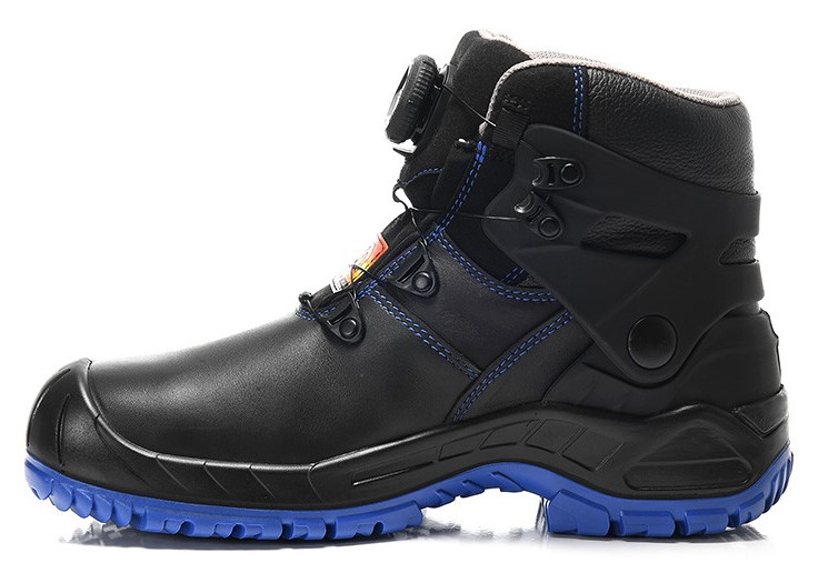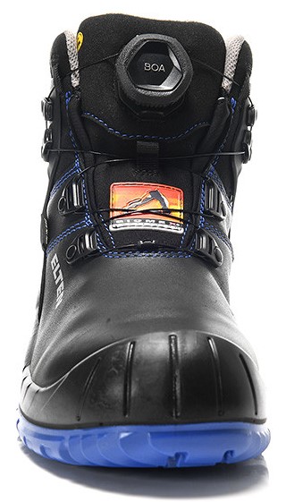 A good safety boot depends on two things: durable material and a practical design that combines a wealth of safety features. The RENZO Biomex GTX BOA® blue Mid ESD S3 effortlessly brings these two points to perfection. Starting with the upper material made from hydrophobized nubuck and cowhide leather. This offers little contact surface for dirt or sharp-edged objects, which reduces wear. Just like the PU toe protection, which further reinforces the forefoot area. A look inside reveals: a pleasant shoe climate is guaranteed here, because with GORE-TEX Performance Comfort Footwear you are simply in good hands whatever the weather. The BOA® Fit System, which can be closed and opened as precisely as a Swiss watch, proves to be extremely practical and ensures that the boots fit perfectly. The steel toe cap and steel midsole make these boots tough as nails, and nothing can touch them. The PU/PU outsole helps with slippery floors so that the wearer can always walk firmly and safely. The ES