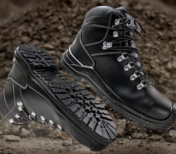 Cow box leather, breathable, recycled textile lining, leather tongue, abrasion-resistant PU overcap, replaceable, anatomical full footbed, flame-retardant laces