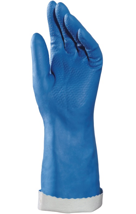 The MapaStanzoil NK22 382 is an optimized chemical resistance and unsurpassed suppleness through patented multi-layer technology. Bonded-in inner knit offers high wearing comfort, maximum flexibility and higher mechanical resistance. Non-slip Z-pattern profile for improved grip when handling damp objects. Comfortable to wear and thermal insulation due to cotton knit. Application: Handling of chemicals, maintenance and repair work, chemical cleaning, cleaning and disinfection. Surface treatment, cleaning in the printing industry.