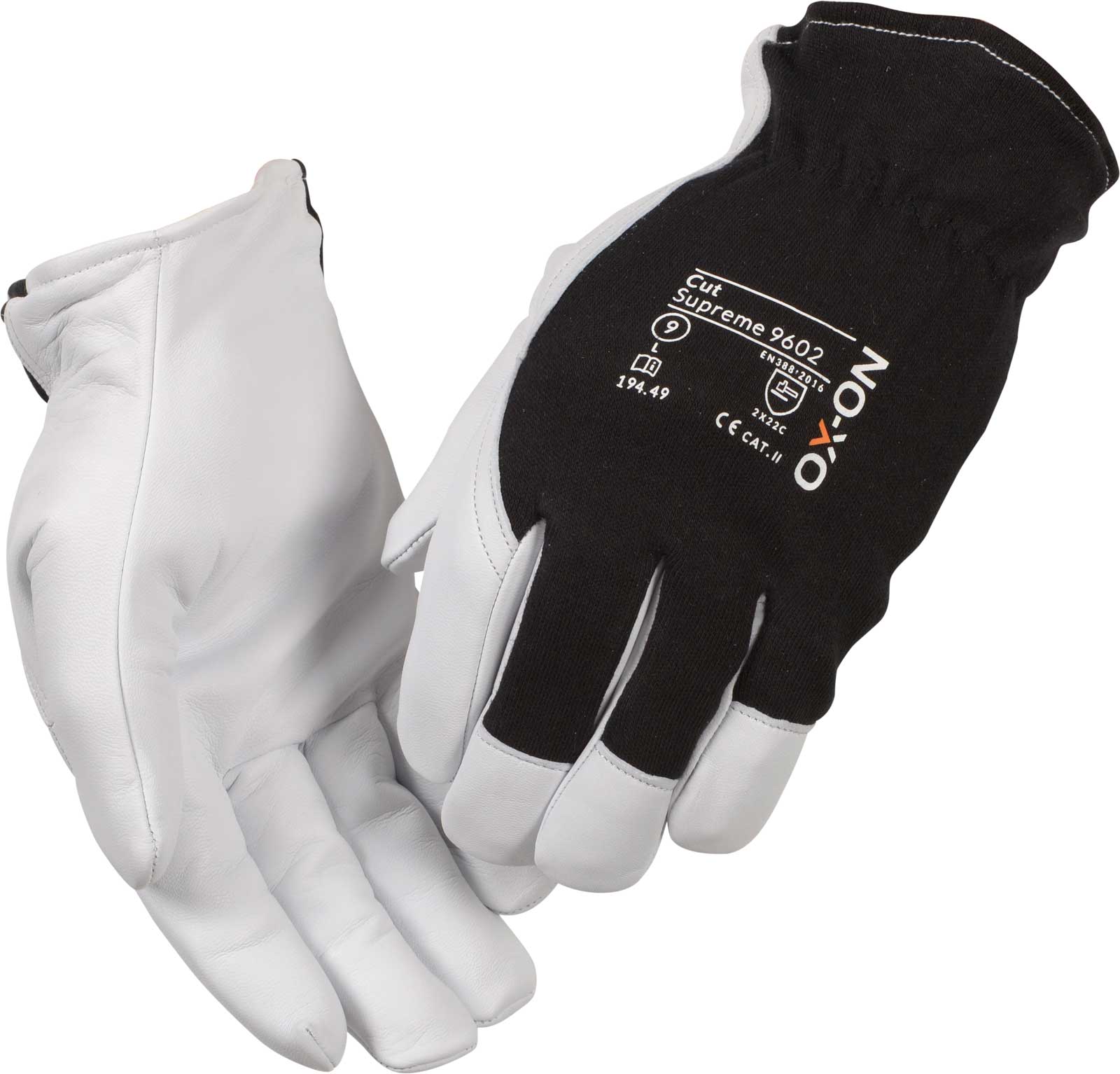 OX-ON Cut Supreme 9602 is a very comfortable and cut-resistant (cut C) quality glove for all those who work with sharp objects, e.g. in connection with assembly or industrial and craft work. The glove is lined with Kevlar, which provides extra protection for the hands. The glove offers good comfort and flexibility and the slip-on function ensures that you can put it on and take it off quickly. The back of the hand is made of cotton and therefore very breathable. The palm and fingertips are reinforced with goatskin, which makes the glove supple and soft and provides a good dexterity. Cut Supreme 9602 is a comfortable safety glove for cutting work that can be used in many different ways.