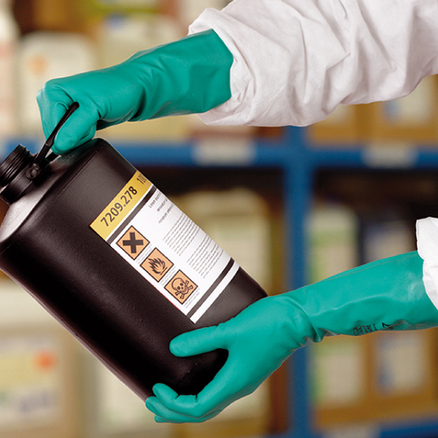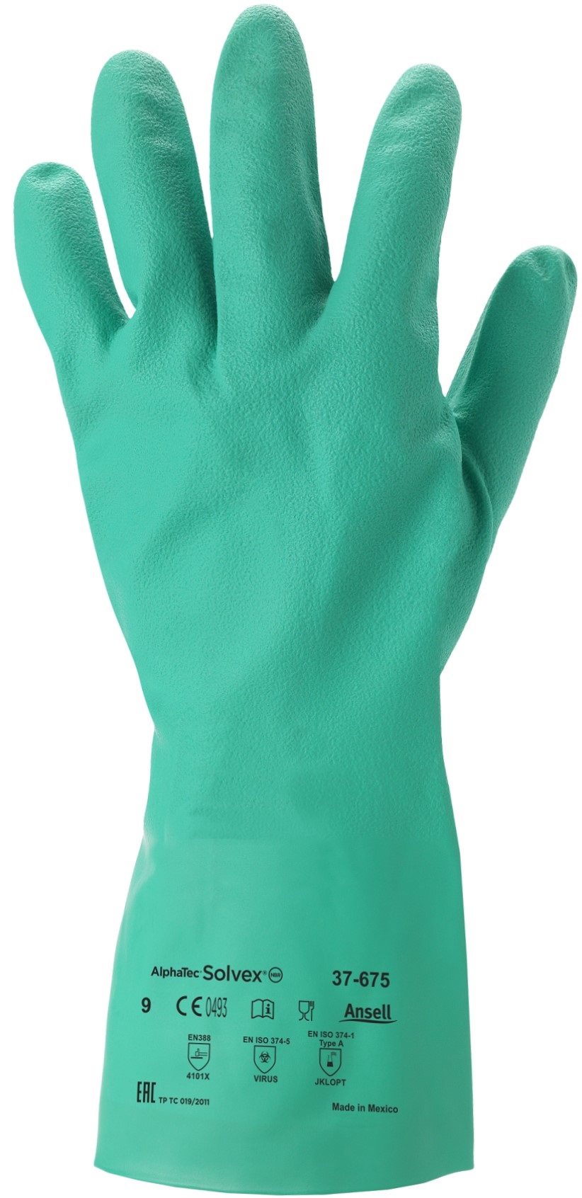 Ansell's Sol-Vex® nitrile glove range is available in a wide selection of lengths, wall thicknesses, sizes and linings. Sol-Vex® achieves optimum results in dry and wet work environments where superior chemical protection is critical. This reusable glove offers remarkable comfort with its uniquely high abrasion resistance. Sol-Vex® nitrile gloves are the ideal choice for safe handling of aggressive chemicals. The cotton velour lining, combined with the flexibility and dexterity of Ansell nitrile rubber, provides the user with exceptional comfort.Its diamond finish enhances grip, while the Sol-Vex®'s hammer-blow profilereduces scrap of sensitive parts due to damage, and thus indirect costs, thanks to its non-slip surface.