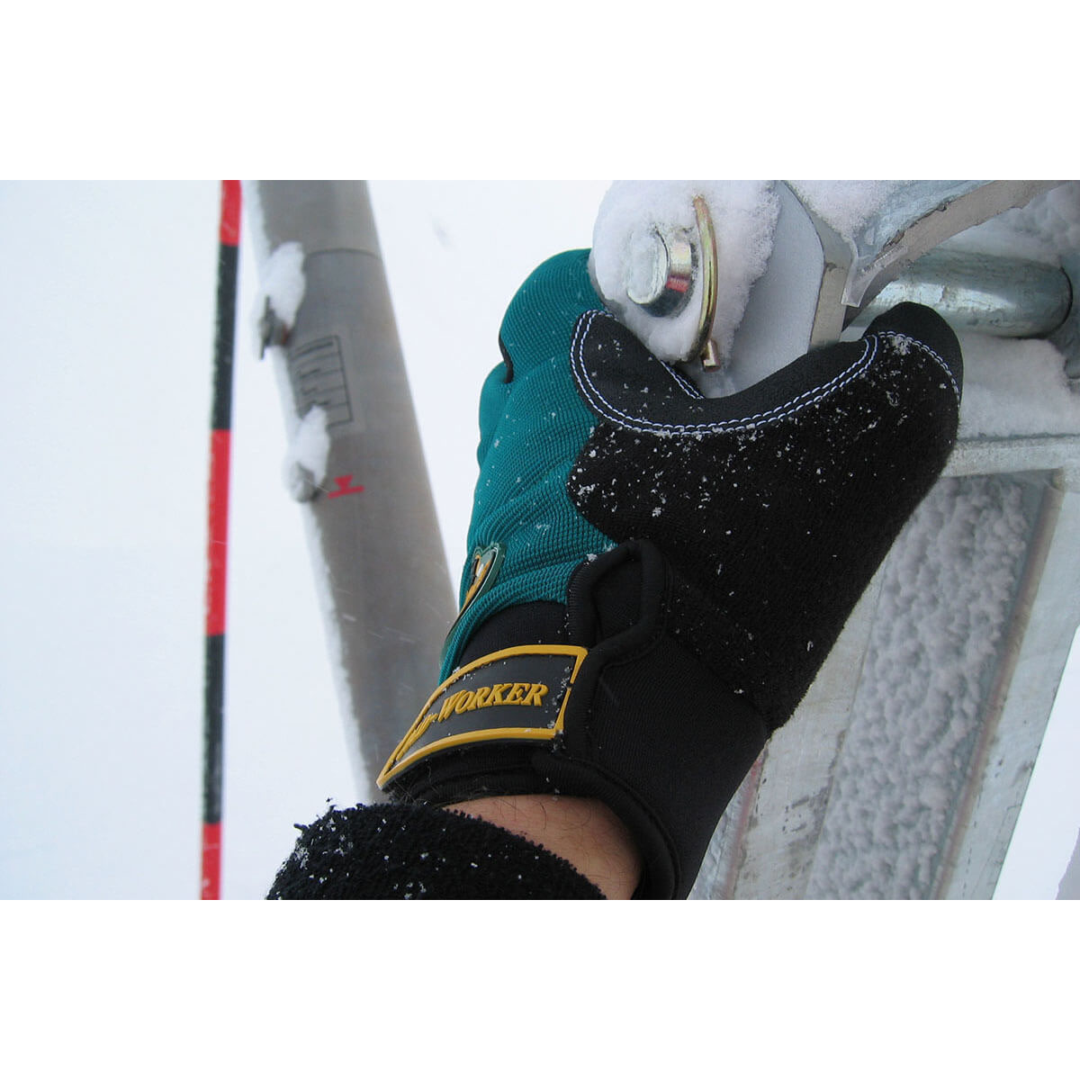 specially developed for working in wet and cold environments, e.g: Work in cold stores, forestry and fishing operations, road construction, civil engineering, mechanics and anywhere in the harshest weather conditions you reach for this glove, winter glove with flexible petrol-green elastane back, wind and watererdi, climate membrane, Original 3M-ThinsulateTM cold insulation lining and micro fleece lining, stretch nylon back, palm made of breathable waschbarem Clarino® synthetic leather, perfect fit, secure hold, good wearing and tactile feel enables long wearing times, maximum protection and wearing comfort.
