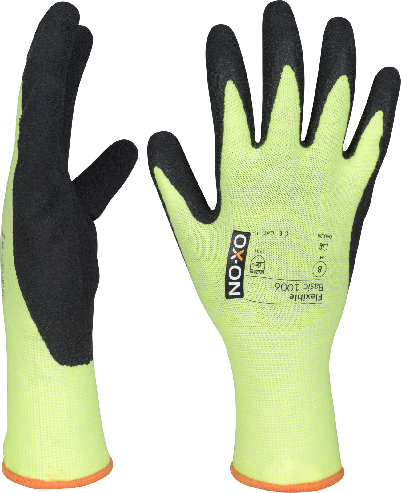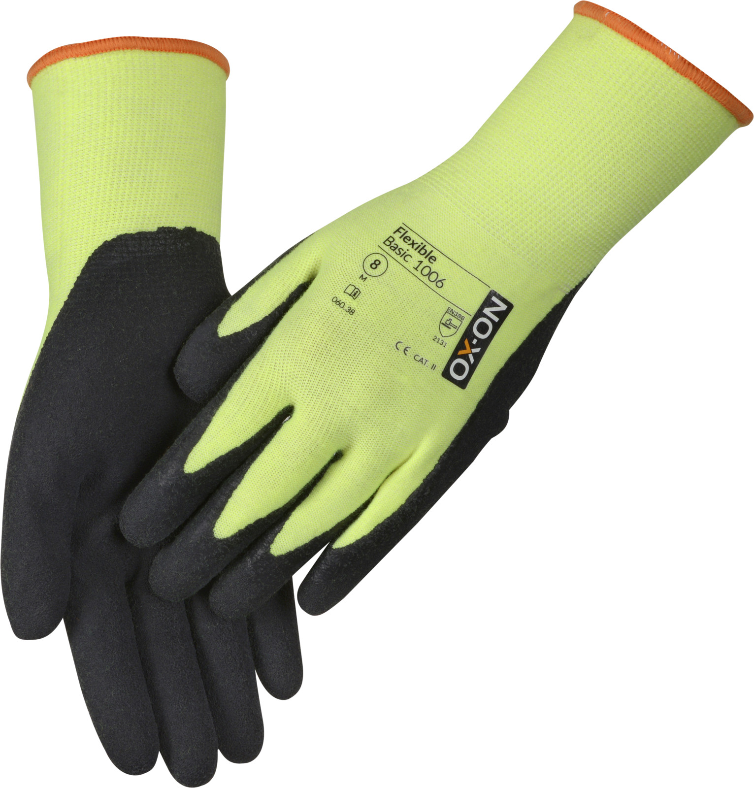 The OX-ON Flexible Basic 1006 is a comfortable and inexpensive transition glove for all those who work as carpenters, construction workers, in the warehouse or in the garden, for example. No matter whether you wear the flexible glove professionally or privately. You get a lightweight all-round glove that works well in a cool environment. The palm and fingers are covered with latex foam, which provides an extremely soft and smooth feeling. The knit is made of cotton and elastane, making the glove elastic and keeping your hands warm. The Flexible Basic 1006 offers high comfort, an ergonomic fit and a perfect sense of touch. The Flexible Basic 1006 is the all-round and transition glove