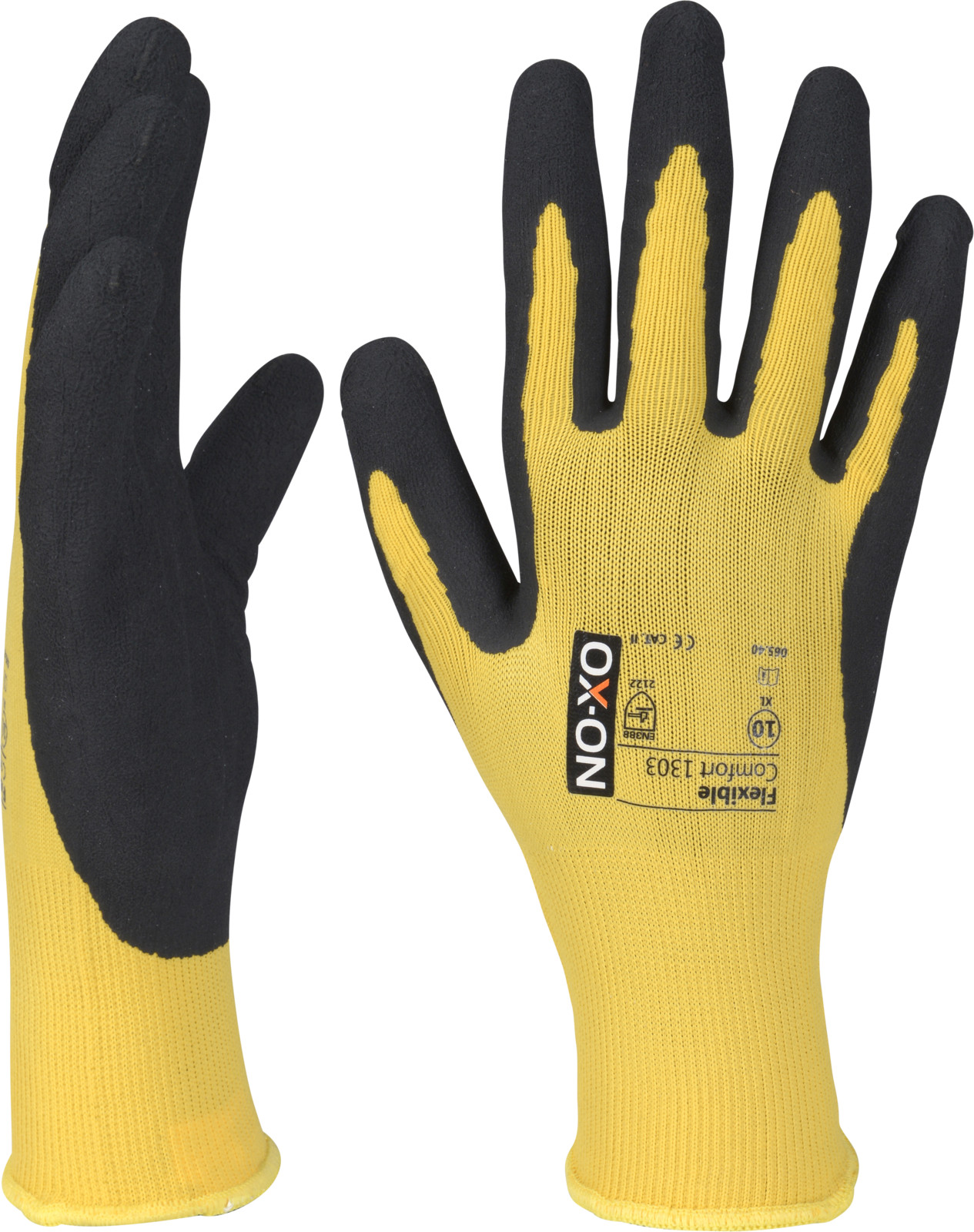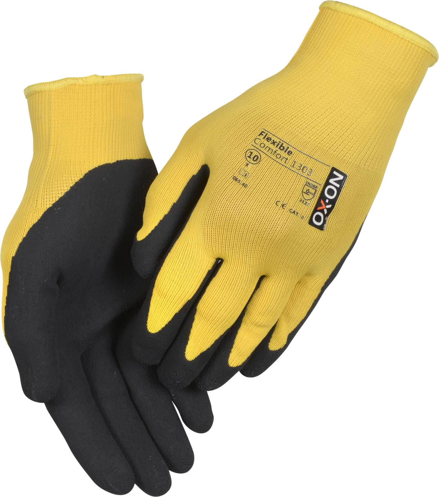 The OX-ON Flexible Comfort 1303 is for everyone who needs a supple and comfortable glove when you work - privately or professionally - in agriculture or in the garden. The knitted fabric is made of polyester, which makes the glove fit perfectly. The OX-ON glove is covered with latex foam on the fingers and palm for soft and comfortable wear. Therefore it is pleasant to wear the glove for a longer period of time. The Flexible Glove is also ideal for anyone who lifts light materials or performs minor assembly work. The glove is light, stable and fits your hand tightly so that you always have a good grip and a good sense of touch