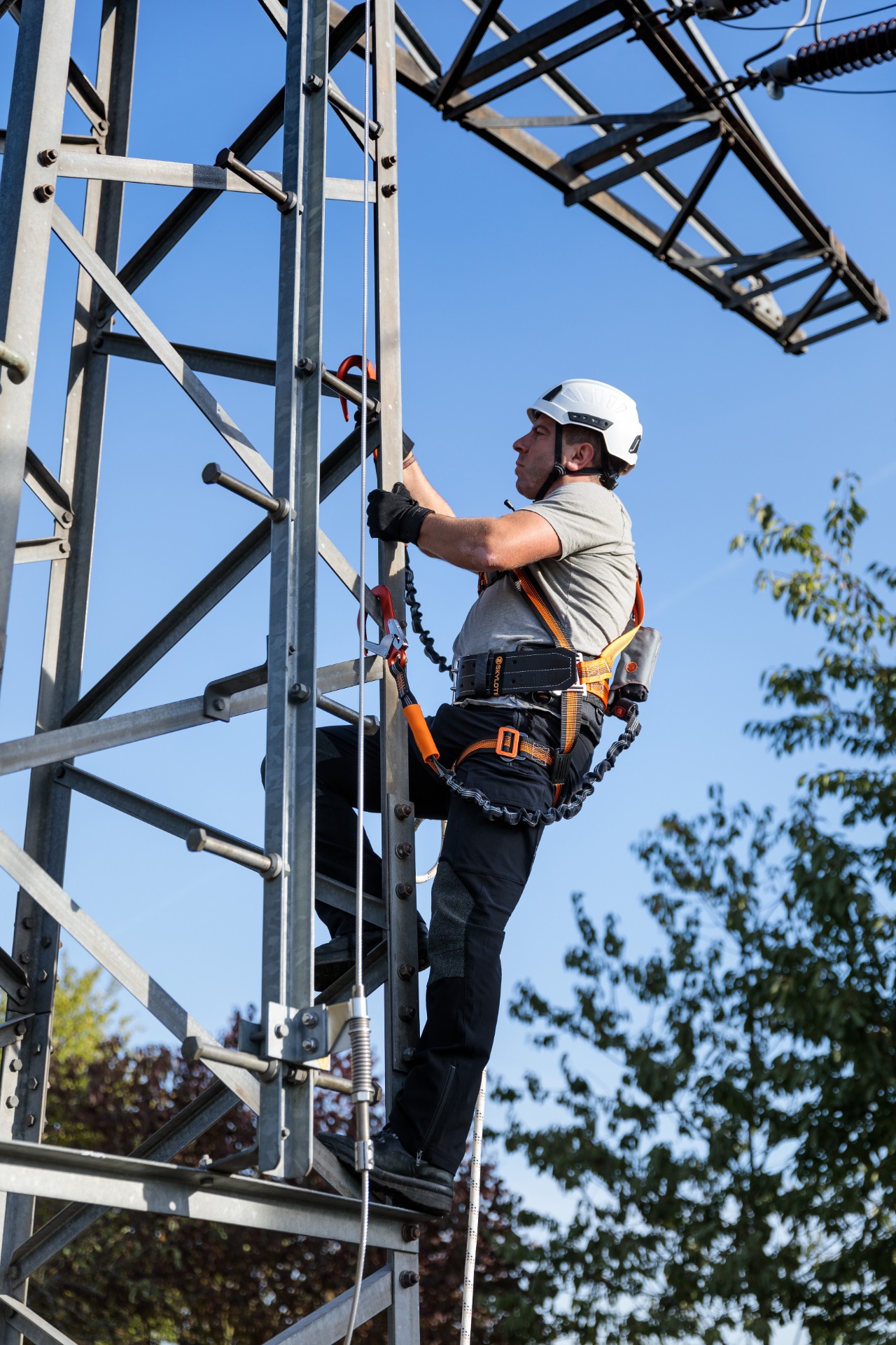 CORION is a very resistant harness specially developed for working at height in corrosion protection. Due to its special construction with extra wide hip belt and adjustable 2-pin buckle, it can be easily and quickly adapted to any user. With the proven webbing adjusters of the IGNITE series, adjusting the harness is effortless and safe. In addition, the new adjusters prevent the webbing from loosening again during work. The two textile rope loops in the chest area and the D-eyelet in the shoulder area are used as fall arrest eyes according to EN 361. The lateral eyelets are not only used for work positioning. They are also extremely rigid, so that heavier loads such as buckets and tools can be carried permanently. -extra wide hip belt for quick circumferential adjustment -rigid lateral holding eyes for carrying buckets and tools -in 2 sizes, tested for user weights up to 140kg.