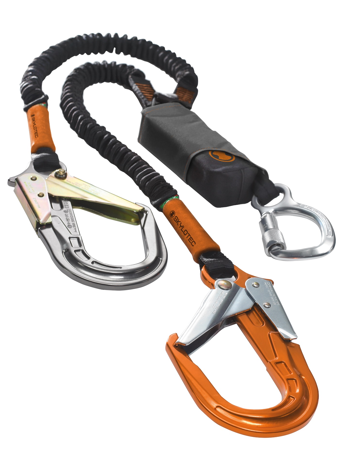 50 - 140 kg INSIDE the standard! ONE4ALL - The SKYSAFE PRO - Revolutionary, patented shock absorber system, which always realizes a max. impact force of less than 6kN and a fall arrest distance of max. 1,75m at the large weight range of 50kg - 140kg. This makes SKYLOTEC the only manufacturer to fulfill the complete EN 355 with an increased test weight of 140 kg. The 22kN final strength, also in the damper, before AND after the dynamic fall, is also exceptional. The SKYSAFE PRO also meets the most relevant international standards in just ONE product. UNIQUE: Due to the sewn-in RESCUE LOOPS, which become visible in case of a fall, the rescue system can be attached directly to the shock absorber without an additional rope clamp. Available in four different versions with different karabiner combinations: I-string, Y-string, I-string tie-back, Y-string tie-back.