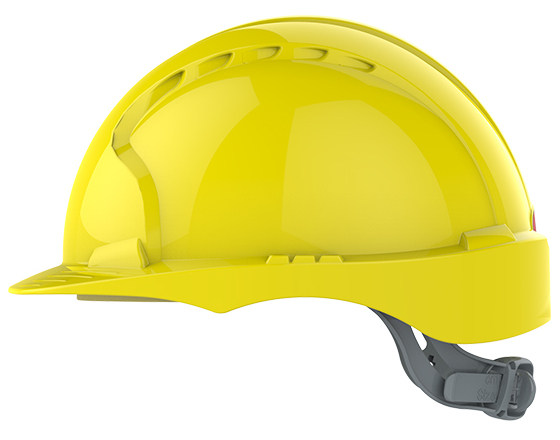 JSP EVO 3 Protective helmet Turning wheel lock Risk 4 - 1000V non-ventilated in online shopThe MK3 Evolution Comfort Plus helmet combines the excellent protection thanks to the super-strong helmet shell with the comfort advantages of the Evolution 3D interior equipment. EVO®3 represents a true evolution of the popular MK2 and MK3 helmets, the first of which was launched in 1970. In tests, the EVO®3 clearly exceeded the stability required by the EN397 standard and is therefore much more stable than all its competitors Standards: EN397, EN50365 Shock absorption: 50 Joule Finishing with own logo possible Heat test up to +50 °C Cold test down to - 40 °C Electrical insulation max. 1000V alternating voltage or 1500V direct current Textile belt system Colours: white, orange, blue, yellow, green, red PU: 10 piecesMaximum comfort The 6-point Terylene harness system and the Chamlon™ Egyptian cotton sweatband offer unparalleled comfort. Chamlon & rotary sweatband sweatband cotton sweatband
