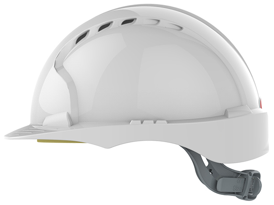 JSP EVO 3 safety helmet with sliding closure Risk 4 ventilated in the online shopThe MK3 Evolution Comfort Plus helmet combines excellent protection thanks to the super-strong helmet shell with the comfort advantages of the Evolution 3D interior. EVO®3 represents a true evolution of the popular MK2 and MK3 helmets, the first of which was launched in 1970. In tests, the EVO®3 clearly exceeded the stability required by the EN397 standard and is therefore much more stable than all its competitors Standards: EN397, Shock absorption: 50 Joule Finishing with own logo possible Heat test up to +50 °C Cold test down to - 40 °C Textile belt system Colours: white, yellow, green, grey, red, orange, black PU: 10 piecesMaximum comfort The 6-point Terylene harness system and the Chamlon™ Egyptian cotton sweatband offer unparalleled comfort. Chamlon & rotary sweatband sweatband cotton sweatband with porous PU surface layer for maximum sweat absorption. PH neutral, dermatologically tested. 3D p