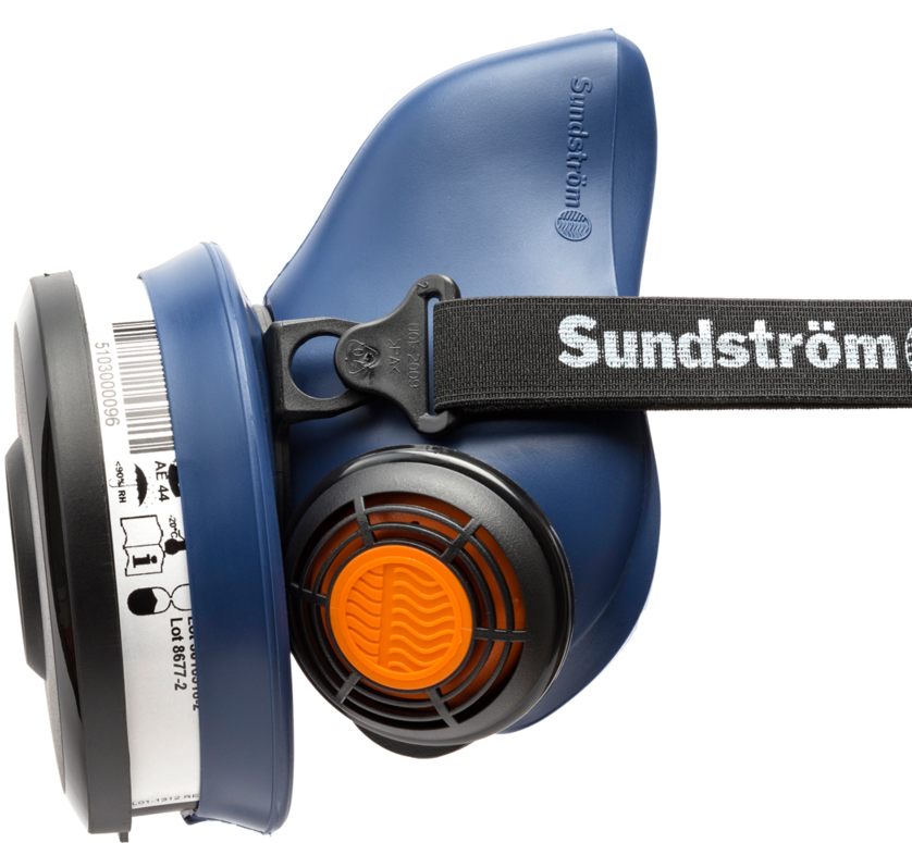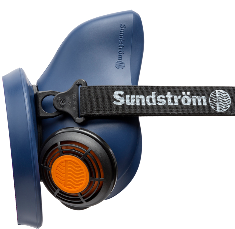 The SR 100 half mask is made of silicone and is available in three sizes S/M, M/L and L/XL. The mask is equipped with two exhalation valves, which are characterized by extremely low breathing resistance. The valve caps with shields protect the exhalation membrane against dust and paint particles. The material and colour pigments of the mask body are approved for foodstuffs (FDA and BGA), so that the risk of contact allergies is kept to a minimum. The easily adjustable straps represent a V-loop and feature a large cupped headpiece for comfortable and secure adjustment. The mask is used either as a filter shield in combination with filters from the Sundström range or, in combination with compressed air additive SR 307, is converted into a continuous flow respirator for connection to compressed air. Holders for pre-filters are included in the delivery. Best stored in box SR 230 or storage bag SR 339.