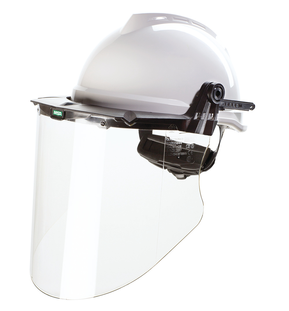 MSA injection molded polycarbonate visors are designed to withstand tremendous stress. They protect and provide consistent comfort in demanding arc chink applications or steel/smelter operations where they are exposed to high levels of heat and/or bright light. V-Gard PC Injection Molded Visors provide excellent protection from flying debris, spatter, UV radiation, molten metal, and arc flash. Because they are injection molded, they offer high optical quality, optimal visual comfort, and they reduce eye fatigue. Their resistance to chemicals and heat is better because they are thicker and less stressed than leaf visors.