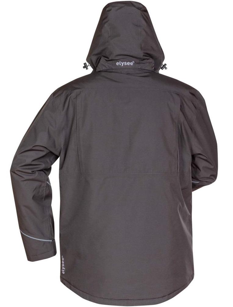 Material: 100% polyester, with highly breathable PU coating	Breathability: 3,000 g/m²/24 h	Water column: 8.000 mm	Lining: 100% polyester	Padding: 100% polyester	Colour: black	Sizes: S - 4XL	wind and watererdi, highly breathable	especially light and comfortable	Welded seams	zip-off storm hood in collar, ergonomically shaped, adjustable, with fleece lining	concealed robust 2-way front zipper	high collar for protection againstWitte	reflective inserts for improved visibility and fashionable design	warming fleece lining in the upper body area	comfortable taffeta lining at hem and sleeves	adjustable sleeve waistband with Velcro fastener	Movement folds in the back	adjustable hem	easy emblem application due to zipper in the lining	2 breast pockets with zippers	2 hip pockets with zippers	2 inside pockets with velcro fasteners	Packaging unit: 5 pieces