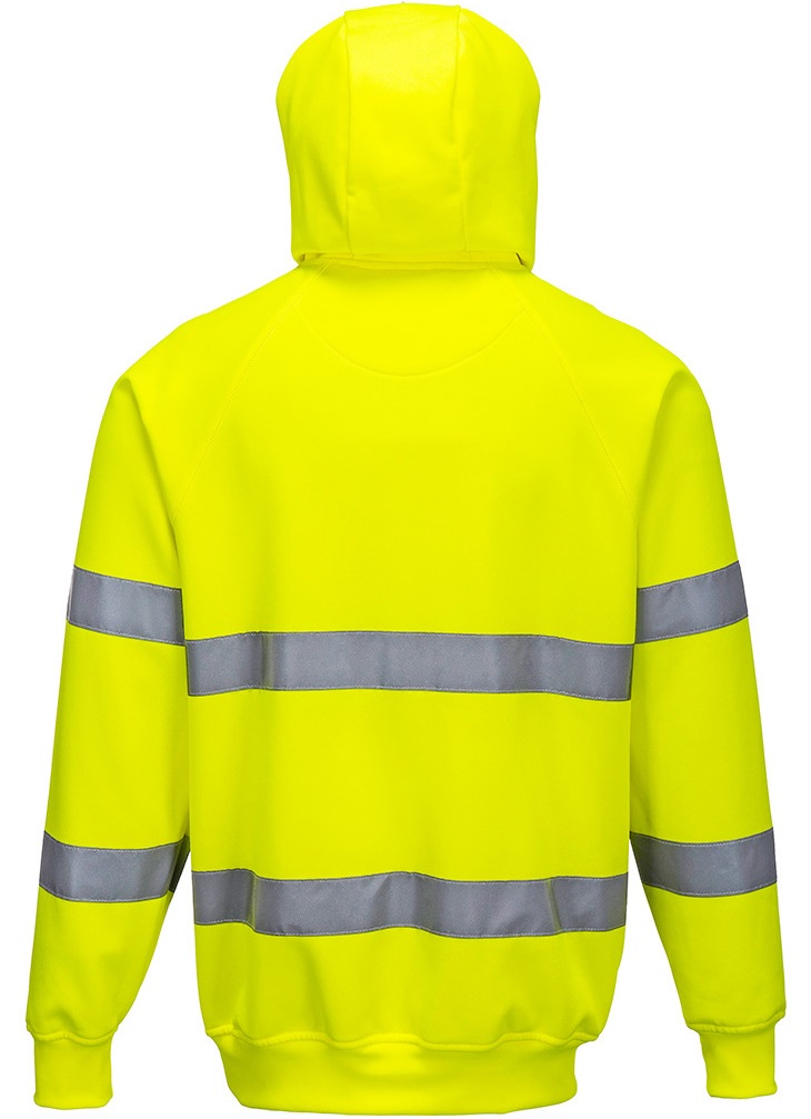 This hooded sweatshirt is ideal for all weather conditions. Durable fabric, large pockets and an adjustable hood make it a perfect garment for your work.Warning Protection Sweatshirt Collection Warning PortwestProtection Sweatshirts are made of a special blend of 65% polyester/ 35% cotton, with a brushed inner material for extra warmth. The fabric is breathable and flexible, yet robust and durable. Thus perfectly applicable for the hardest working environments.Warning Protection Our extensive warning protection collection, meets the highest requirements in design and workmanship to ensure that the items comply with the latest standards EN ISO 20471 & ANSI. Innovative and technical, our warning collection is ideal for those who don't compromise on style, comfort, protection and performance.Product features:	Standards ANSI/ISEA 107-2015 TYPE R CLASS 3 AS/NZS 4602.1:2011 Class D/N RIS-3279-TOM ISSUE 1 (ORANGE ONLY) EN ISO 20471 Class 3 GO/RT 3279 Issue 8 (orange only) 	CE certified	Knit