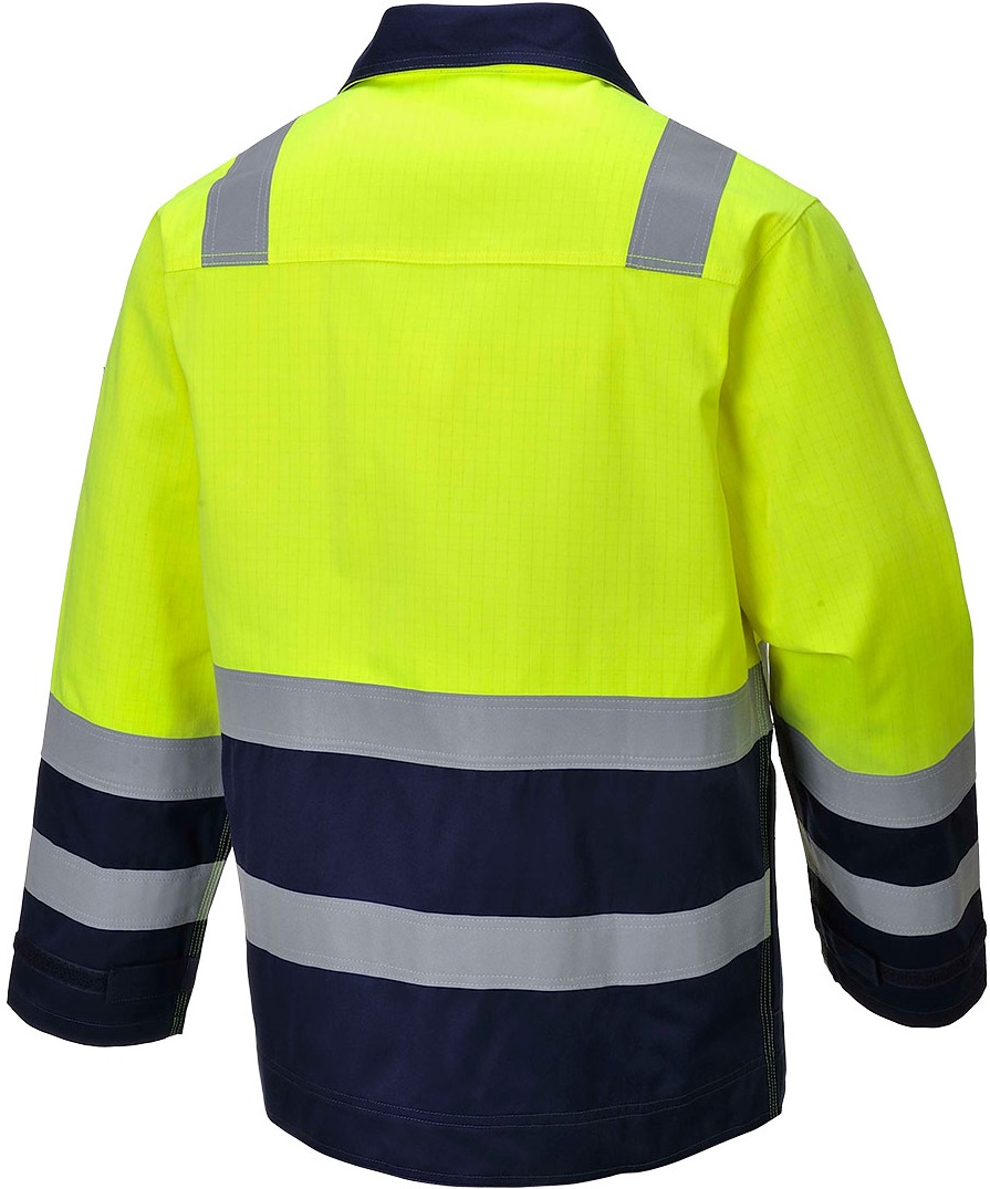 Product information:The two-tone Modacryl fabric, together with the reflective stripes, offers the wearer enhanced visibility and full protection in lightingefahresituations. The improved design fulfils the strict requirements of the licencehbprotection.The garments can be worn on top of each other to provide greater protection against arcing (-> Arc Thermal Performance Value = ATPV) or to increase the threshold when the material breaks (Energy Break open threshold = Ebt). For example, if the undergarment of an ebt of 4.3 Cal/m2 and an overall worn over it reaches an ATPV of 13.6Cal/cm2, the combined ATPV is in any case greater than the sum of the two individual layers, because the layer of air between the layers provides the wearer with additional protectionProduct features: Standards: AS/NZS 1906.4:2010, EN 1149 -5, EN ISO 11612 (A1+A2,B2,C1,F1), EN ISO 11611 Class 1 (A1+A2), IEC 61482-2 IEC 61482-1-2 Class 1, EN ISO 20471 Class 2, ASTM F1959/F1959M-12 (ATPV=8.4 Cal/cm2 (HAF=75.8%))