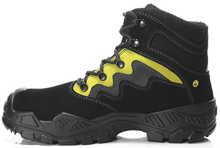 Wenn man auf der Suche nach einem Sicherheitsstiefel ist, welcher besonderen Halt bietet, wird man hier fündig. Durch die PU/PU Sohle CROSSWORKER mit der stabilen Rahmenkonstruktion ist für exzellente Rutschhemmung und erhöhte Trittfestigkeit gesorgt. Zugleich schützt der MICK black-green Mid ESD S3S den Träger vor Gefahren von oben und unten mit einer Zehenschutzkappe aus Stahl und einem leichtem, textilem Durchtrittschutz. Wasserabweisend ist er auch, dank des hydrophobierten Veloursleders kombiniert mit Textilmaterial. Trotzdem behält er ein angenehmes Tragegefühl, denn das atmungsaktive Textilfutter sorgt dafür, dass sich keine Schwitzflüssigkeit im Inneren ansammeln kann. Auch auf ESD-Fähigkeit wurde geachtet und dafür gibt’s die Einlegesohle ESD PRO black, weil sie elektrische Aufladung kontrolliert über den Stiefel ableitet. Optisch punktet der Sicherheitsstiefel mit seitlichem Reflexmaterial und einer PU-Überkappe, die zugleich die Langlebigkeit fördert, weil die Überkappe aus Polyurethan Risse und Faltenbildung im Obermaterial minimiert. Verfügbar ist der Sicherheitsstiefel in den Größen 40 bis 48.