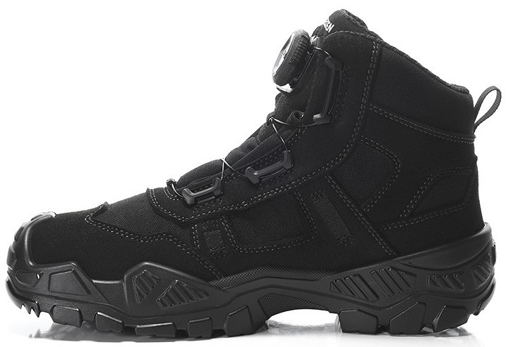 Wer vermehrt auf unebenen Böden unterwegs ist, braucht Schuhe, die stabil sind. Der MIKE BOA black Mid ESD S3S bringt mit seiner PU/PU Sohle CROSSWORKER genau das mit. Die Sohle verfügt über spezielle Rahmenelemente, die für mehr festen Halt sorgen, so dass der Fuß mehr Trittfestigkeit erhält. Zudem ist die Sohle dank ihres Profils extrem rutschhemmend und auf sämtlichen Untergründen gut einzusetzen. Für ein angenehmes Tragegefühl sorgen das atmungsaktive Textilfutter und die hydrophobierten Obermaterialien Mikrofaser und Textil. Die PU-Überkappe bewahrt das Obermaterial vor zu schneller Abnutzung – der Schuh ist also auch für diejenigen geeignet, die häufig auf den Knien arbeiten. Mit dem BOA® Fit System hat der Sicherheitsstiefel einen äußerst robusten und bequemen Verschluss, der zudem für eine perfekte Passform sorgt. Der Drehverschluss ist schnell zu bedienen und kann – wenn nötig – auch auf der Leiter flott nachjustiert werden. Die nötige Sicherheit vor herunterfallenden Gegenständen bietet die Zehenschutzkappe aus Stahl, die metallfreie Zwischensohle schützt vor Gefahren von unten. Der ESD-fähige MIKE BOA black Mid ESD S3S ist in den Größen 40 bis 48 bestellbar.