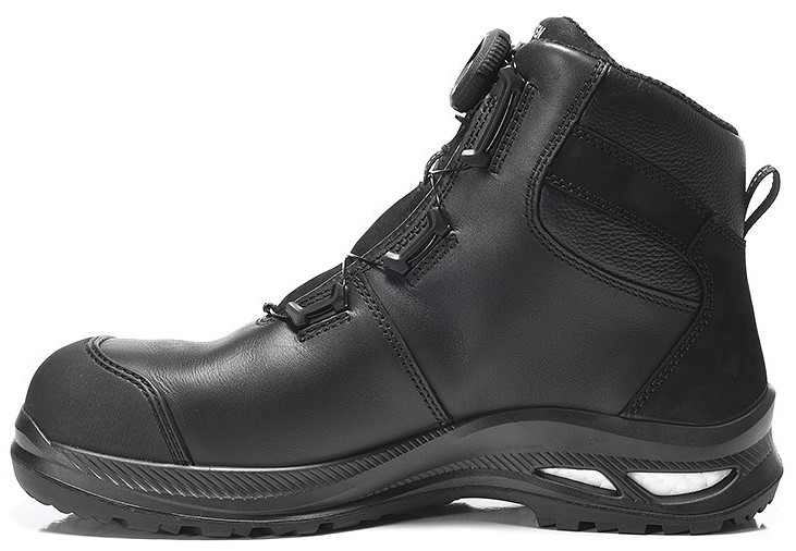 Der TERENCE XXG PRO BOA® black Mid ESD S3 HI ist das Schweizer Messer unter den Sicherheitsstiefeln, denn hier bekommt man ruckzuck eine Menge sinnvoller Funktionen an die Hand. Mit dem BOA® Fit System zum Beispiel ist schnelles An- und Ausziehen dieses Stiefels überhaupt kein Problem. Verschlussknopf andrücken, dann im Uhrzeigersinn drehen – schon ziehen sich die reißfesten Bänder des Verschlusssystems so zu, dass der Schuh stundenlang perfekt am Fuß sitzt. Hebt man dann den Verschlussknopf an, lässt sich das Ganze wieder lösen. Das Obermaterial besteht aus Rindsleder, ein natürliches Material das atmet und geschmeidig sitzt, beim Innenfutter kommt atmungsaktives Textil zum Einsatz, das den regen Austausch von Feuchtigkeit und Luft fördert, so dass das Schuhklima immer in Balance ist. Mit der Kunststoffkappe wird der Zehenbereich rigoros vor Stößen abgeschirmt, der abriebfeste Spitzenschutz macht das Rindsleder vorne nahezu unkaputtbar. Ein metallfreier Durchtrittschutz sorgt dafür, dass der SRC-zertifizierte und ESD-fähige Sicherheitsstiefel sicher vor eindringenden Nägeln oder Metallspitzen ist. Die Laufsohle aus GUMMI und PU ist rutschhemmend und läuft sich bequem. Bestellbar in den Größen 39 bis 48.