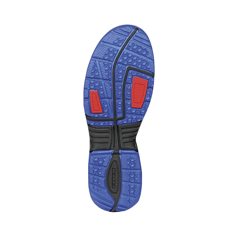 Der AMBITION blue Easy ESD S1 ist eine Sicherheitssandale aus der ELTEN DIMENSION PRO Serie und in den Größen 36 bis 48 lieferbar. Im Schaft dieser modischen Sicherheitsschuhe sind Nubukleder und leichtes Meshmaterial verarbeitet. Ergonomisch geformte Stahlkappen schützen die Zehen des Trägers vor Stoßeinwirkungen und Druckbeanspruchungen. Eine Besonderheit dieses Sicherheitsschuhs ist die Laufsohle DIMENSION Pro mit rutschhemmendem „Wabendesign“ und speziellen Kontaktächen für fast reibungsloses Drehen auf der Stelle – speziell für harte, glatte Bodenbeläge von Industriehallen. Eine semi-orthopädische Einlegesohle und atmungsaktives Textilfutter sorgen für Tragekomfort. Die Elten Sicherheitssandale S1 AMBITION blue Easy ist durch seine ESD-Ausstattung für Arbeiten in ESDsensiblen und elektrostatisch geschützten Bereichen geeignet und zertiziert für orthopädische Veränderungen.