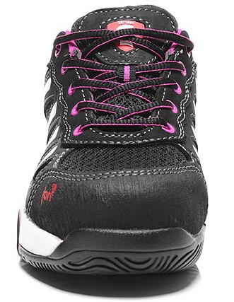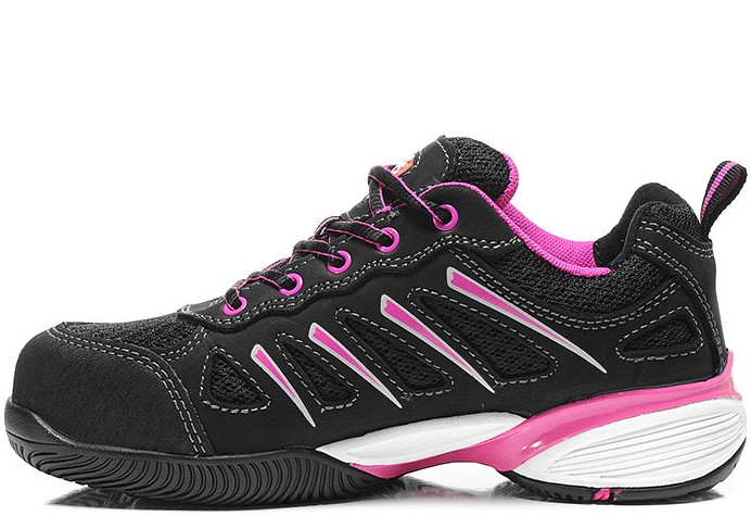 Der jo_FIT LADY Low S1P ist ein Sicherheitsschuh der Marke Jori extra für Damen. Sein sportliches Design gefällt durch eine schwarz-pinke Farbgebung mit weißen Akzenten, und auch der Größengang, der bei 36 beginnt und bei 42 endet, entspricht den gängigen Damengrößen. Eine Fersenschlaufe erleichtert den Einstieg in den Schuh. Das Obermaterial besteht aus einer Kombination von Nubukleder und Meshmaterial, wodurch der Schaft strapazierfähig und atmungsaktiv wird. Als Innenfutter dient atmungsaktives Textilfutter. Dieser Sicherheitsschuh ist ein starker Beschützer: er besitzt eine Stahlkappe sowie einen metallfreien Durchtrittschutz. Die öl-, kraftstoff- und hitzebeständige Sohle, in Rosa-Schwarz passend zum Schuhdesign, wirkt rutschhemmend und verschafft der Trägerin einen guten Halt auf unterschiedlichsten Untergründen. Dank Zertifizierung gemäß DGUV Regel 112-191 ist dieser Damensicherheitsschuh für orthopädische Einlagen zugelassen.