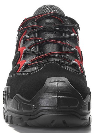 Der MICK black-red Low ESD S2 ist die richtige Wahl für alle, die gut geschützt unterwegs sein wollen. Mit seiner äußerst stabilen CROSSWORKER Sohle aus PU/PU ermöglicht er überall ein sicheres Arbeiten. Denn die Sohlenkonsturktion mit den hochgezogenen Rahmenelementen bietet enorme Trittsicherheit und Stabilität. Zudem sorgt das Profil für eine ausgezeichnete Rutschhemmung. Der Trekking-ähnliche Sicherheitshalbschuh hat zudem eine PU-Überkappe. Dadurch muss sich keine Sorgen um Abnutzung im vorderen Schuhbereich machen. Die hohe Absatzkante ermöglicht zudem mehr festen Stand auf unebenen Böden sowie Leitern. Ebenso muss man sich keine Sorgen um Verletzungen durch herabfallende Gegenstände machen. Die verbaute Stahlkappe schützt die Zehen effizient durch Gefahren von oben. Das Obermaterial aus hydrophobiertem Veloursleder und Textil in Verbindung mit dem roten Wellenmuster und den Ziernähten verleiht dem Schuh sein frisches und modernes Aussehen. Das atmungsaktive Textilfutter gewährleistet ein allzeit angenehmes Klima im Schuh. Darüber hinaus verfügt der MICK black-red Low ESD S2 über die Einlegesohle ESD PRO black. Diese leitet die statische Elektrizität gezielt über die Sohle nach außen und ermöglicht so auch den Einsatz im Umgang mit empfindlicher Elektronik. Der Schuh ist in den Größen 40 bis 48 bestellbar.