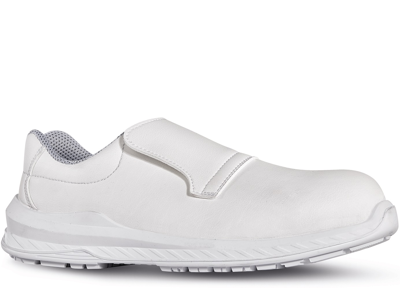 Sicherheitshalbschuhe, weiß, ohne Schnürsenkel, leicht und bequem, U-Power Red Industry Linie, aus New Safety Dry Obermaterial, Composite-Sicherheitskappe, Durchtrittsicherheit, rutschhemmend. S2 SRC ESD