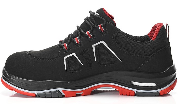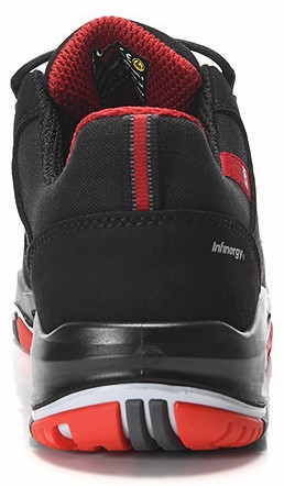 Der ALAN XXTP black-red Low ESD S3S ist ein Sicherheitsschuh genau nach Ihren Wünschen. Der S3S Halbschuh aus der WELLMAXX Produktgruppe ist ein ESD-fähiger Sicherheitsschuh, der ein jederzeit angenehmes Arbeiten möglich macht. Er ist gedeckt mit einem Obermaterial aus hydrophobiertem Textil und hydrophobierten Mikrofasern. Das Textilfutter ist atmungsaktiv und sehr hautfreundlich. Der Schutz wird durch die Zehenschutzkappe aus Kunststoff gewährleistet und macht den Sicherheitsschuh zu einem leichten Begleiter im Arbeitsalltag. Die TPU/PU Laufsohle WELLMAXX TRAINERS POWER ist eine Zweischichten-Profilsohle und schützt den Fuß durch den zusätzlichen textilen Durchtrittschutz und überzeugt darüber hinaus mit einem weichen Kern aus Infinergy®-Material von BASF. Den kann man sogar sehen, durch Sichtfenster an der Seite der Zwischensohle und auf der Unterseite der Laufsohle. Aber den sieht man nicht nur, man spürt ihn vor allem, denn der Kern sorgt beim Laufen für einzigartige Dämpfung und besonderen Tragekomfort. Dadurch wird jeder Schritt um ein Vielfaches dynamischer und das Material gibt dem Bewegungsapparat sogar Energie zurück – ein ziemlich wohltuender Nebeneffekt, der langes Gehen gleich viel erträglicher macht.