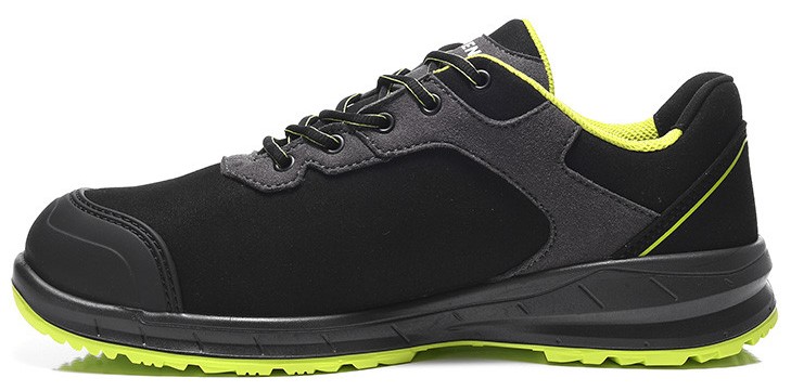 Der LOAN XXSports Pro black-lime Low ESD S3 ist ein Sicherheitshalbschuh, der keine halben Sachen macht. Mit seinem Obermaterial aus hydrophobierter Mikrofaser bietet er Wind und Wetter keine Angriffsfläche, denn das synthetische Material ist widerstandsfähig und die Hydrophobierung schützt aktiv gegen Nässe von außen. Apropos aktiv: auch das Textilinnenfutter ist aktiv, und zwar atmungsaktiv. Das bedeutet, dass die Luft im Schuh gut zirkuliert und beständig gutes Innenklima herrscht. Die Stahlkappe vorne bildet einen absolut verlässlichen Schutzschild gegen herabfallende Gegenstände oder Stoßeinwirkungen von oben. Dank des metallfreien Durchtrittschutz haben Gefahren von unten ebenfalls keine Chance. Mit der Überkappe aus TPU gelingt es ihm darüber hinaus, das Obermaterial im vorderen Schuhbereich gegen Verschleiß abzusichern. Seine Laufsohle WELLMAXX SPORTS verleiht ihm trittfesten Stand, und das im Sohlenkern befindliche Sohlenmaterial Infinergy® von BASF sorgt für ganzflächige Dämpfung, was Ermüdungserscheinungen bei langem Gehen und Stehen vorbeugt. Alles in allem ein Spitzenprofi, der durch seine lime-grün leuchtenden Farbakzente auch bei schlechten Sichtverhältnissen voll präsent bleibt. Lieferbar ist der SRB-zertifizierte und ESD-fähige LOAN XXSports Pro black-lime Low ESD S3 in den Größen 35 bis 48.