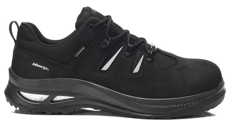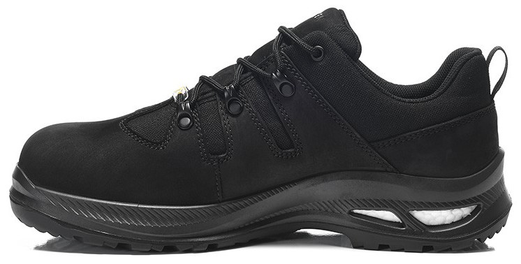 Wenn wir Schuhe imprägnieren wollen, gehen wir ins Schuhgeschäft und besorgen uns Imprägnier-Spray. Beim NELSON XXG GTX black Low ESD S3 HI CI ist die Imprägnierung schon ab Werk gegeben, nur spricht der Lederfachmann hier von einer speziellen Hydrophobierung. Diese Hydrophobierung wird vorgenommen, um das Obermaterial aus Nubukleder und Textil wasserbeständig und atmungsaktiv zu machen. Besonders erwähnt sei hier in Sachen Atmungsaktivität die GORE-TEX Performance Comfort Footwear im Inneren. Dieses Spezialmaterial besteht aus vier Schichten, jede einzelne trägt zur hervorragenden Klimaregulierung bei – das ist für jeden ein Gewinn, der diese Schuhe stundenlang an den Füßen trägt. Ein Top-Vorteil ist auch die Kunststoffkappe. Die macht den Zehenbereich stoßsicher. Der metallfreie Durchtrittschutz wiederum macht den Sohlenbereich trittfest gegen spitze Gegenstände wie Nägel und scharfe Kanten. Apropos Sohle: die ist doppellagig aus GUMMI und PU, SRC-zertifiziert, besonders rutschhemmend und dämpfungsaktiv. Erhältlich ist der NELSON XXG GTX black Low ESD S3 HI CI in den Größen 39 bis 48.