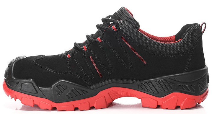 Fliesenleger können ein Lied davon singen – ohne vernünftigen Spitzenschutz sieht der beste Sicherheitsschuh nach kürzester Zeit abgenutzt und unschön aus. Gut, dass es unseren QUENTIN black-red Low ESD S3S gibt, ein modisches Allroundtalent auf der Baustelle. Der hat nämlich eine PU-Überkappe, die den Abrieb des Obermaterials vermindert. Außerdem hat die PU/PU Sohle CROSSWORKER eine spezielle Rahmenkonstruktion mit hochstehenden PU-Elementen. Die machen das Ganze noch stabiler und geben dem Fuß beim Auftreten und Abrollen quasi "sicheres Geleit". Das tiefe Profil macht den Sicherheitsschuh zudem zum perfekten Begleiter auf nassen wie trockenen Böden – drinnen wie draußen. Das Obermaterial aus hydrophobiertem Veloursleder und Mikrofaser mit roten Ziernähten und Details verleiht dem Halbschuh sein sportliches Aussehen. Und auch seine inneren Werte können sich sehen lassen. Das atmungsaktive Textilfutter sorgt für ein angenehmes Klima im Schuh, die Zehen sind durch eine Stahlkappe geschützt und der metallfreie Durchtrittschutz verhindert das Eindringen von Nägeln. Darüber hinaus ermöglicht die Einlegesohle ESD PRO black auch den Umgang mit sensibler Elektronik, denn sie gewähreistet die Ableitung der statischen Elektrizität. Der QUENTIN black-red Low ESD S3S ist in den Größen 40 bis 48 erhältlich.