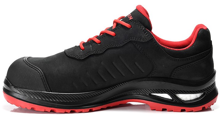 Schwarzer Schaft und rote Sohle – dieser Kontrast ist eigentlich fast schon ein klassisches ELTEN Merkmal. Gepaart mit perfekt aufeinander abgestimmten Sicherheitsfeatures handelt es sich beim STEWART XXG Pro GTX black-red Low ESD S3 HI CI um einen der komfortabelsten und sichersten Schuhe, die draußen unterwegs sind. Mit dem Modell in der Low-Top-Version bekommt der Träger eine ebenso bewährte wie moderne Mischung aus sportlichem Design und knallhartem Fußschutz, die keine Wünsche offen lässt, denn Zehenschutzkappe aus Kunststoff, textiler Durchtrittschutz, TPU-Überkappe und Infinergy®-Dämpfung von BASF sorgen tagein, tagaus für das gute Gefühl, dass die Füße rundum sicher sind und Muskeln und Gelenke geschont werden. Das alles in einem robusten und widerstandsfähigen Gehäuse aus hydrophobiertem Nubukleder und GORE-TEX Performance Comfort Footwear, das atmungsaktiv und wasserdicht ist. Mehr Gutes kann man für seine Füße kaum tun. Zu haben ist der bequeme Allround-Performer in den Größen 39 bis 48.