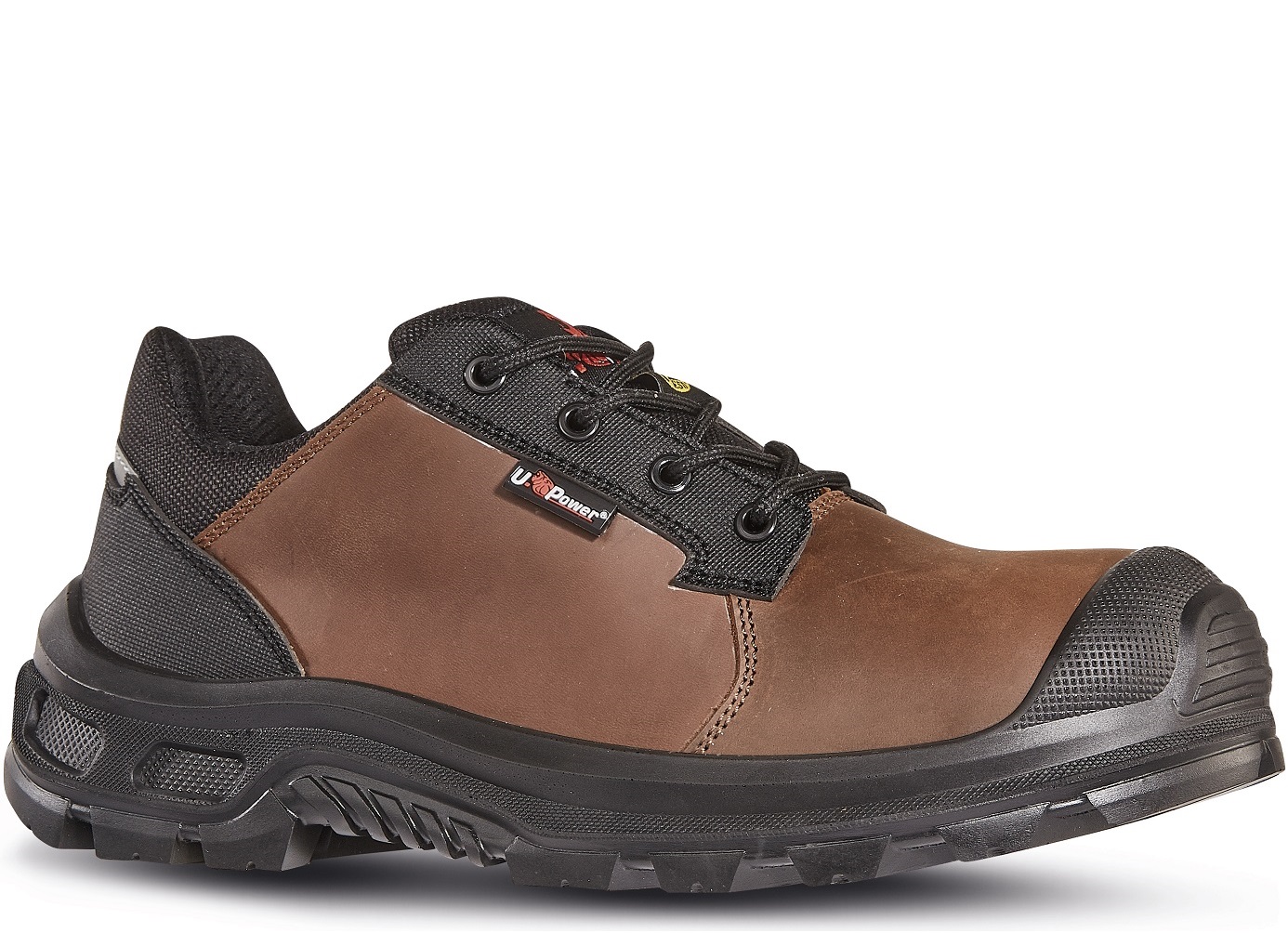 Niedrige Arbeitsschuhe U-Power Red Industry Linie, Obermaterial aus Weiches Pull-Up Leder mit abriebfesten Aufsätzen und Knöchelschutz, wasserabweisend, Composite-Schutzkappe, Durchtrittsicherheit, und PU/PU, abriebfest, antistatisch, Öl-resistent und rutschhemmend. Fußbett WOW2 mit Anti-Ermüdungs Einsatz. S3 CI SRC ESD