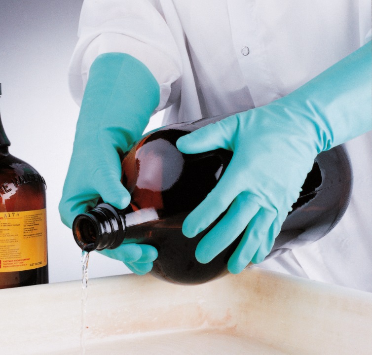 Chemischer Schutz kombiniert mit mechanischer Widerstandsfähigkeit. Optimale Fingerfertigkeit. Hohe Widerstandsfähigkeit gegen organische Lösungsmittel und Alkohole. Handfläche und Finger mit Profil für gute Griffsicherheit. Geeignet für Reinräume: gleichbleibend niedriger Gehalt an Verunreinigungen (ISO Klasse 5). Anwendung: Für alle Anwendungen, die eine geringe Anzahl von Partikeln und extrahierbaren Substanzen erfordern; Umgang mit Silizium; Herstellung hochreiner Chemikalien; Umgang mit Lösungsmitteln, Mischen von Chemikalien.