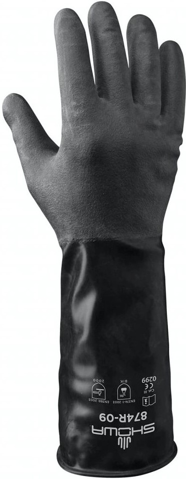 Der chemikalienbeständige Handschuh SHOWA 874 bietet besten Schutz gegen hochkorrosive Säuren, Ketone und Ester. Butylkautschuk bietet von allen Materialien zur Fertigung von Handschuhen den höchsten Permeationswiderstand gegenüber Gasen und Wasserdämpfen. Eine geschmeidige Grifffläche bietet eine ungesehene Tastsensibilität und Leistung.