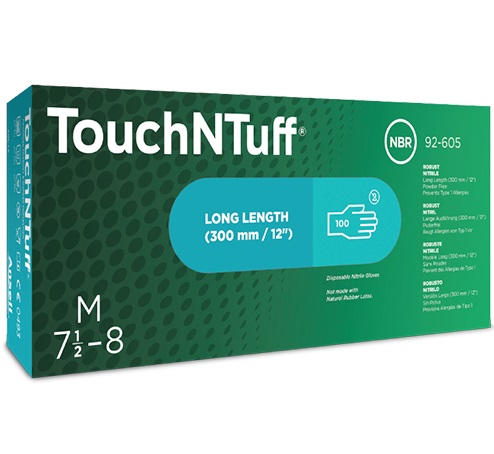 Der aus Nitril hergestellte TouchNTuff bietet eine viermal höhere Durchstichfestigkeit als Naturlatexhandschuhe und die dreifache Durchstichfestigkeit im Vergleich zu Einweghandschuhen aus Neopren. Latexfrei: kein Risiko einer Typ-I-Allergie. Primäre Hautreizungsstudien und Insult-Patch-Tests haben keinen Nachweis einer Hautreizung oder allergischen Kontaktdermatitis erbracht. Durch seine einzigartige Formulierung mit der „Thin Nitril Technology“ lässt sich dieser Handschuh, der einen sicheren Nass- und Trockengriff bietet, leicht an- und ausziehen. Dieser Handschuh ist in zahlreichen Arbeitsbereichen vielseitig einsetzbar.