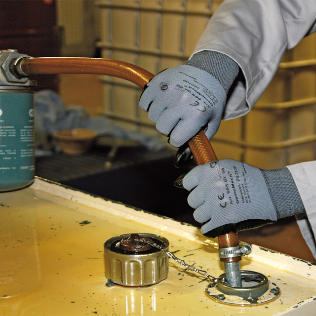 Der GemoMech 665 überzeugt durch eine enganliegende Passform, sehr gute Feinfühligkeit und gute mechanische Belastbarkeit. Die spezielle Beschichtung aus Nitrilschaum und die zusätzlichen Nitrilnoppen sorgen für eine herausragende Griffigkeit bei der Arbeit mit öligen/rutschigen Gegenständen. Durch die schwarze Beschichtung ist der Handschuh insgesamt unempfindlicher gegenüber Schmutzablagerungen, was die Standzeit des Produktes entsprechend erhöht. Der Handschuh ist waschbar, was zu einer längeren Lebensdauer beiträgt.