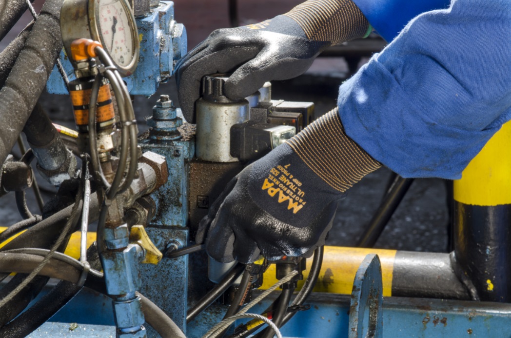 Ölabweisender mechanischer Schutzhandschuh für fingerfertiges und griffsicheres Arbeiten in öligen Bereichen. Hervorragende Abriebfestigkeit, sehr gutes Tastgefühl, waschmaschinengeeignet und dadurch lange haltbar. Anwendung: Mechanische Industrie, Automobilindustrie: Bearbeitung von Werkstücken mit Schneidöl, Umgang mit Blechen, öligen Maschinenteilen, Umgang mit und Sortieren von scharfkantigen Kleinteilen. Glasindustrie: Umgang mit Glasplatten. Mechanische Industrie: Wartungsarbeiten in feuchter Umgebung (Wasser, Öle, Fette, Kohlenwasserstoffe), Montage öliger Kleinteile. Kommunale Einrichtungen: Leichte, allgemeine Wartungsarbeiten.