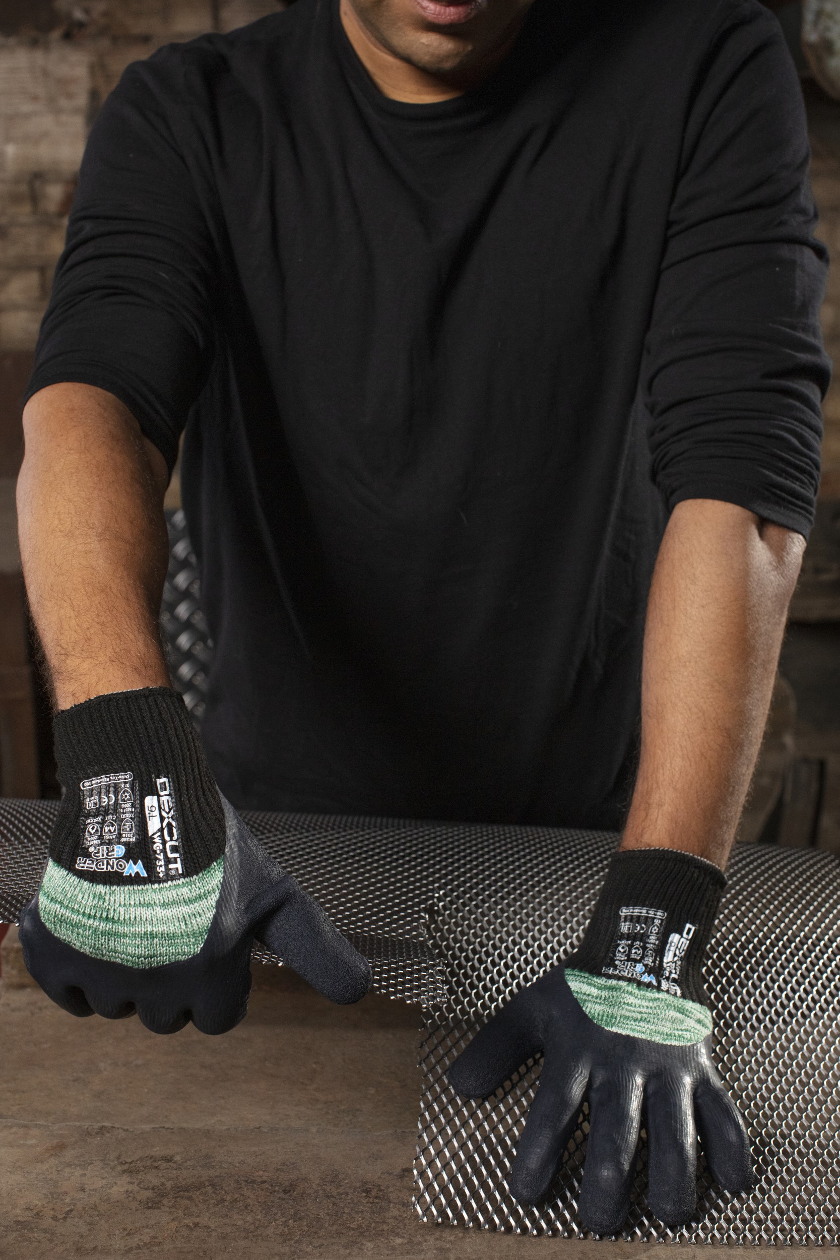 Der Dexcut® WG-733+ wurde für schwere Arbeiten in trockener oder leicht fettiger Umgebung mit mittleren bis schweren Schnittrisiken konzipiert. Die speziell von Wonder Grip® entwickelte HDML™-Beschichtung gewährleistet eine rutschfeste Oberfläche, außergewöhnliche Anti-Verschleiß-Eigenschaften und einen doppelten Schutz gegen thermische Risiken. Der umfassende Schutz unseres einzigartigen WG-733+ macht ihn zum ultimativen Handschuh für den Allround-Einsatz in halbtrockenen Umgebungen.