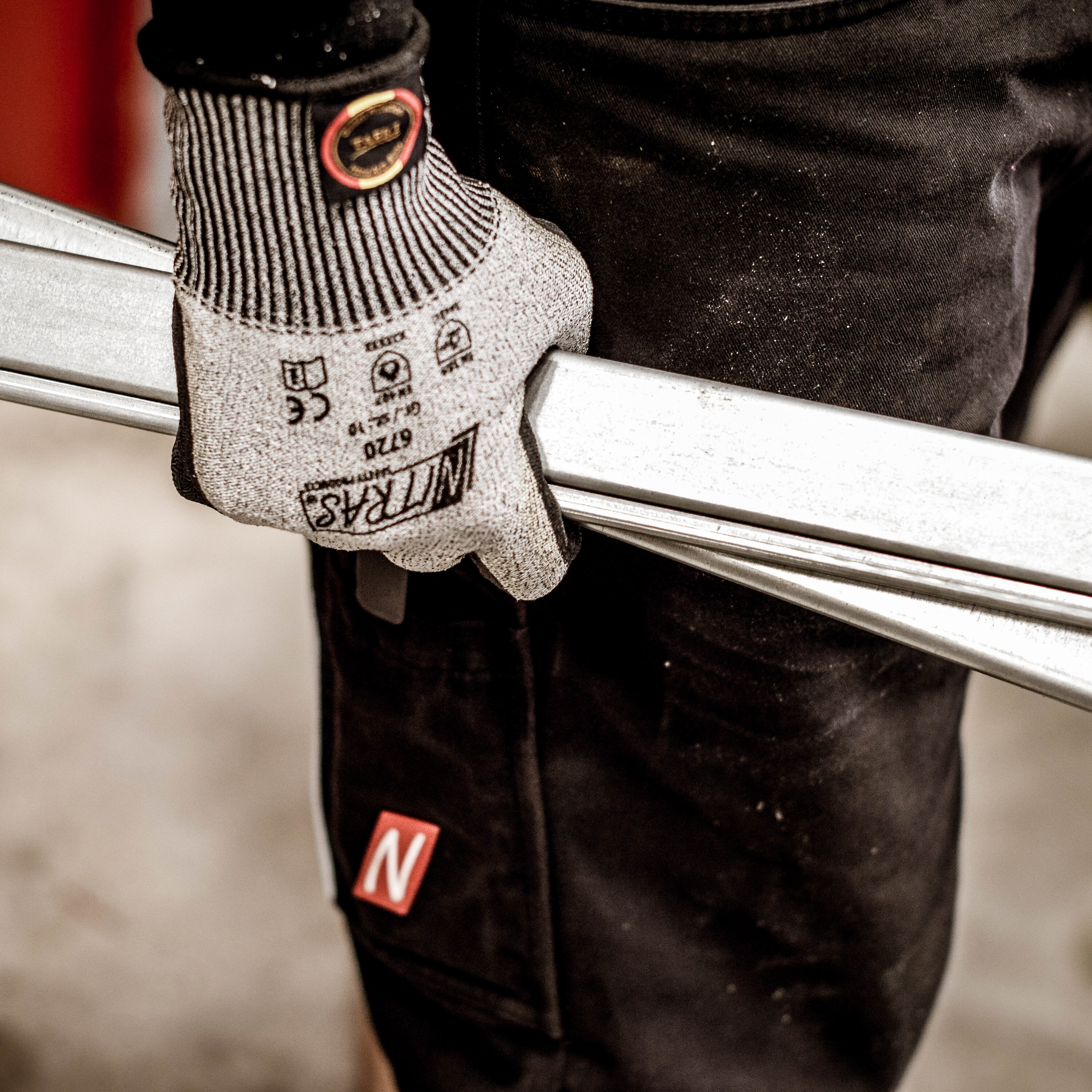 NITRAS TAEKI5 Schnittschutzhandschuhe, grau, Latex-Beschichtung, teilbeschichtet auf Innenhand und Fingerkuppen, schwarz, Strickbund, höchster Schnittschutz (Leistungsstufe 5), höchster Tragekomfort, höchste Fingerfertigkeit, TAEKI5-Spezialgarn, schrumpfgeraute Beschichtung für extreme Griffigkeit.
