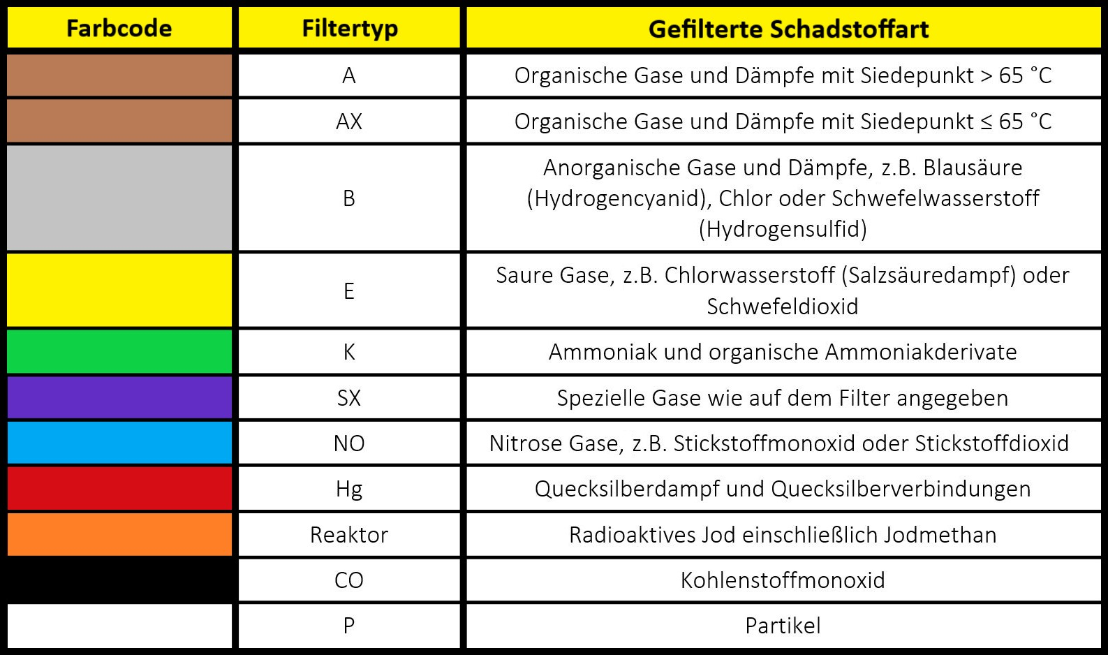 • Partikelfilter: Schützen vor partikelförmigen Schadstoffen wie Staub, Rauch und Aerosolen (siehe EN 143)
